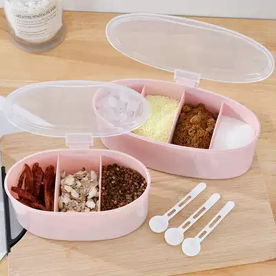 Four-grid three-style feeding box Plastic thickened sub-grid Household kitchen with lid with spoon seasoning tank Salt seasoning bottle