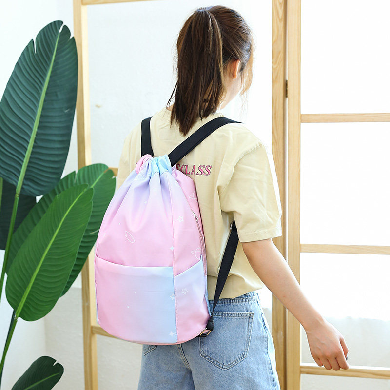 Original Beam Pocket Draw Rope Double Shoulder Bag Women 2020 Large Capacity Travel Backpack Leisure Oxford Cloth Sports Fitness Bag-Taobao
