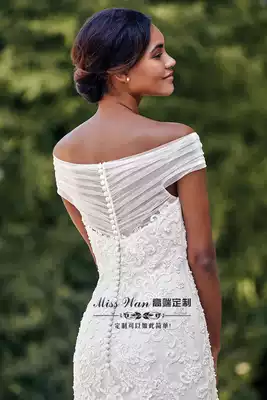 2021 New one shoulder long tailing ceremony wedding dress fishtail slim bride wedding high end custom beaded wedding dress