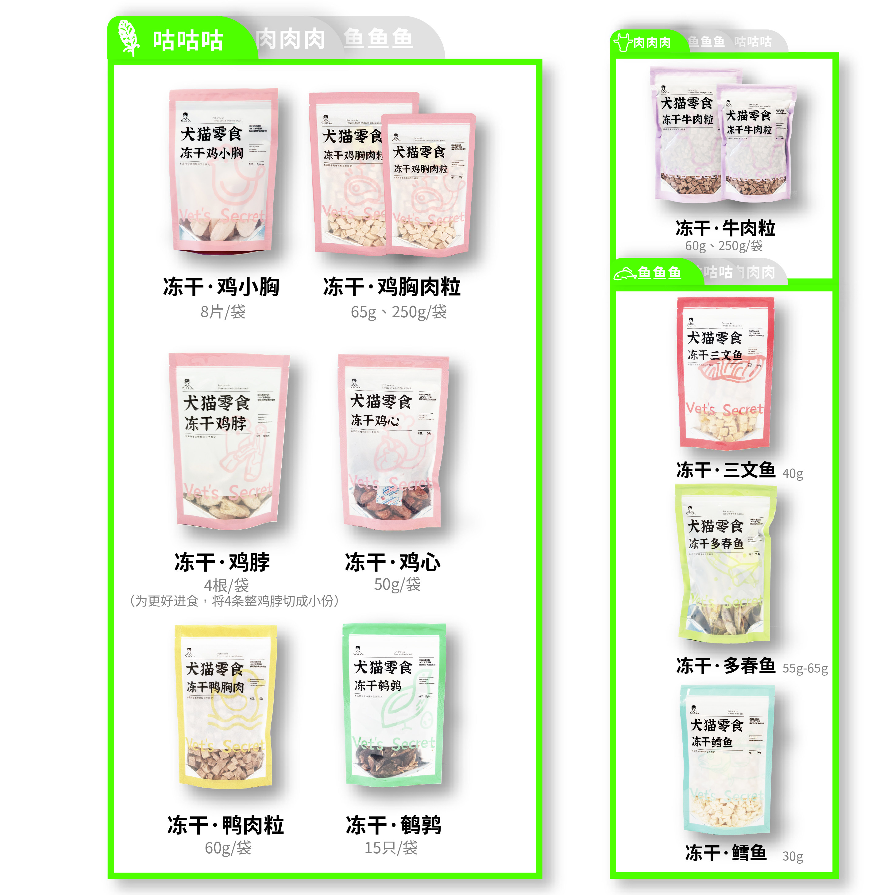 Veterinary Zhang Xu dog and cat training snacks freeze-dried chicken quail cod fish beef duck nutrition general pet food