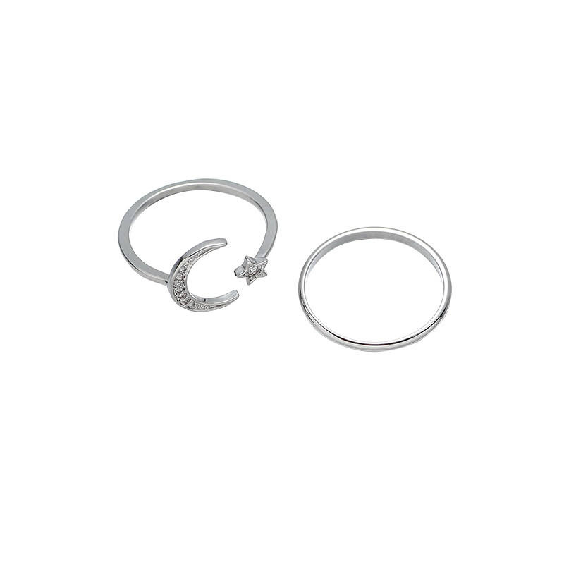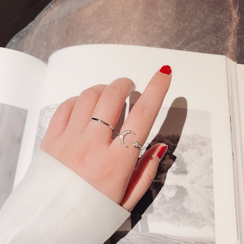 Flash Drilling Stars Moon Opening Ring Female Korean Version Little Fresher Jayosen Department Index Finger Ring Suit Tide People Accessories