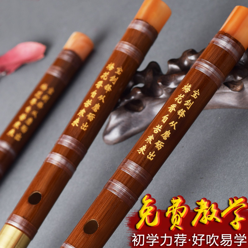Exquisite flute Bitter bamboo High-grade ancient style bamboo flute C Adult D Beginner children's introduction F play E horizontal flute instrument G tune