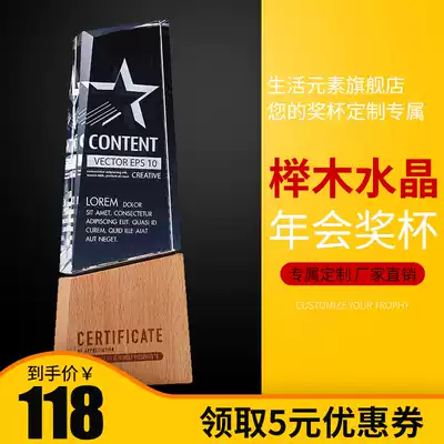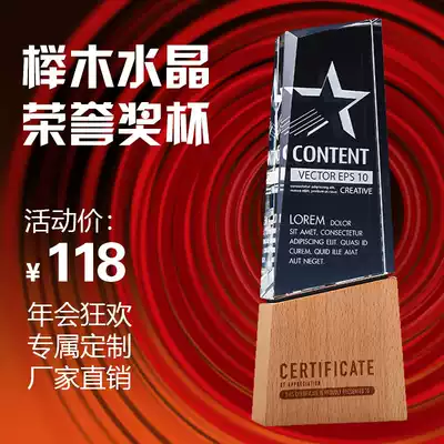 Creative Wooden Crystal Trophy Customized Medals Customized 3d Inner Carving Authorized Production Honor Brand Excellent Staff Memorial