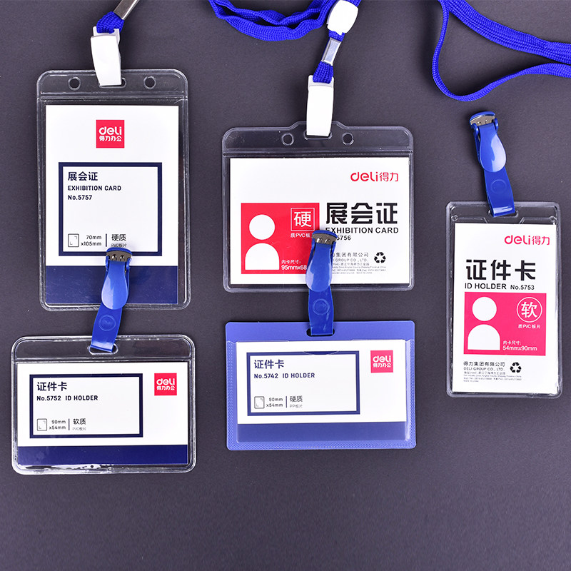 10 Deli ID sets Horizontal vertical badge Access card sets Work card labels with lanyard Student campus card Transparent waterproof ID card sets Protective sets Bus meal card work card tags