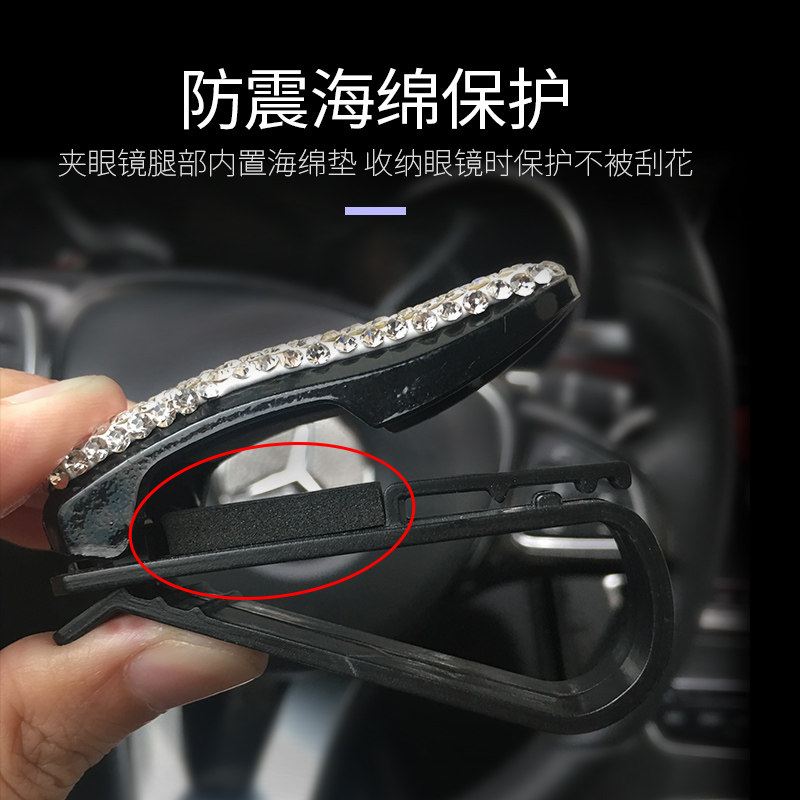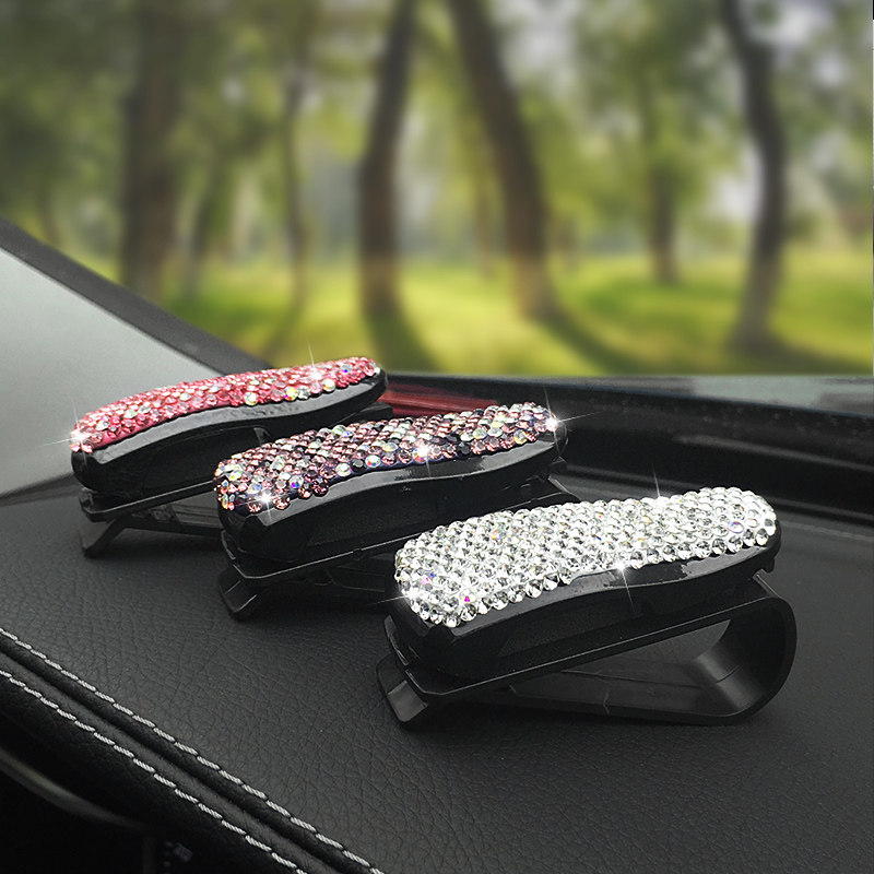 Car sun visor glasses clip multi-functional ladies rhinestone creative sunglasses bracket bill clip interior supplies