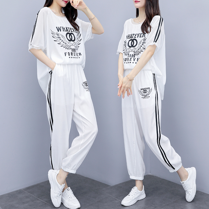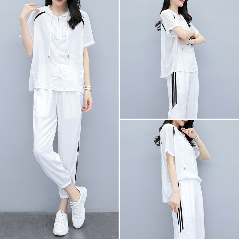 Snowspun Ocean sends two sets of European stations 2022 new temperament fashion Aging White Sports Casual Suit Women Summer