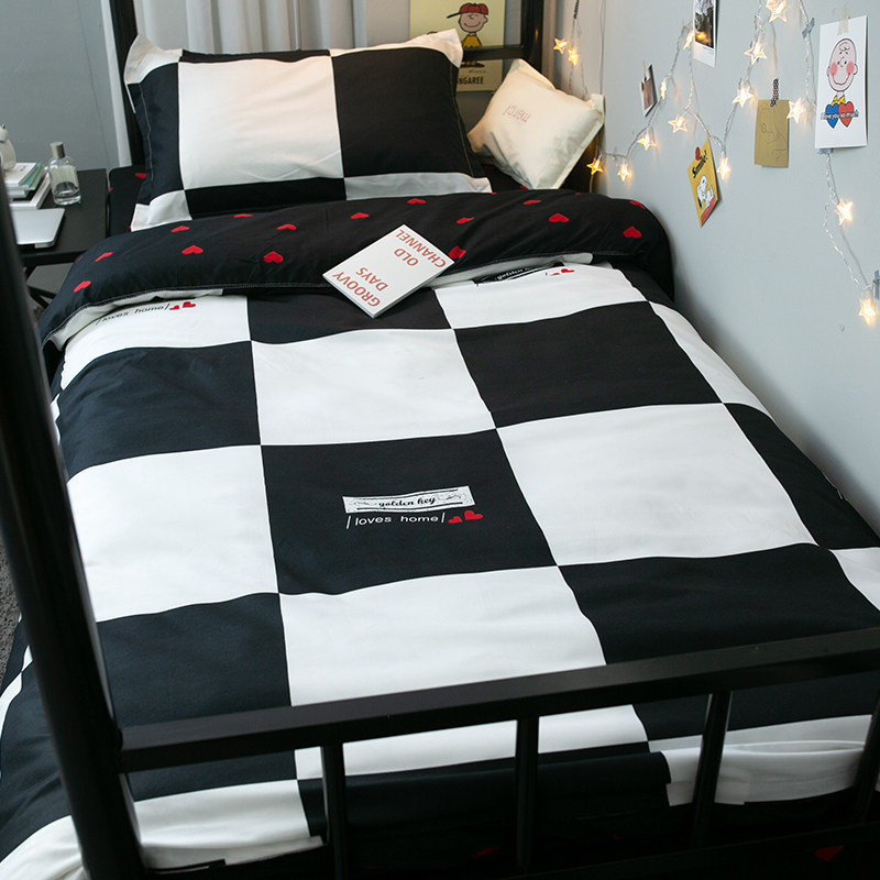 Minimalist grid Three-type bed set bedding Upper bunk bunk bed Dormitory Dorm Room Men's Quilt Cover Four Pieces