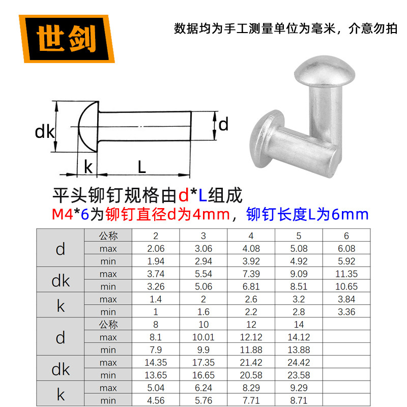 Half round head pan head pure aluminum solid rivets percussion nails GB867 solid percussion cap Ding decorative frying pan 3