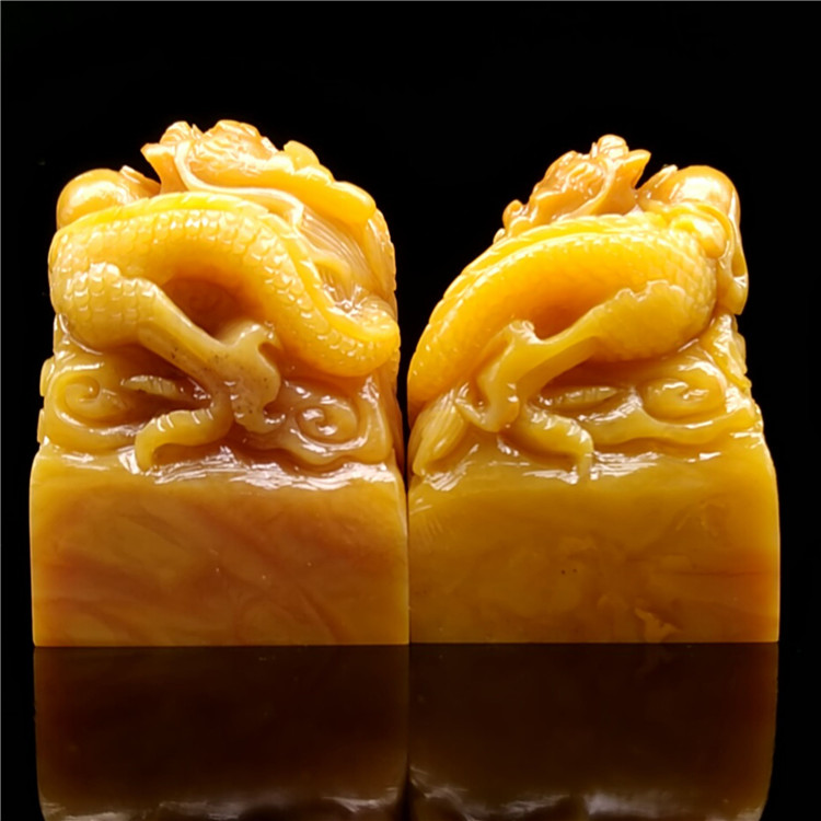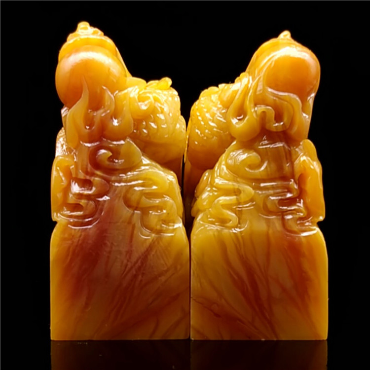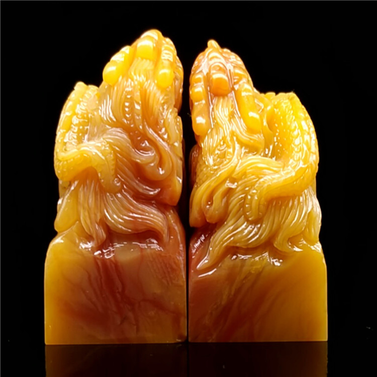 Natural Shoushan Stone Tianhuang Stone in Northern Laos Single Dragon Playing with Beads and Seals Gold and Stone Seal Carving Rough Stone Collection Gifts