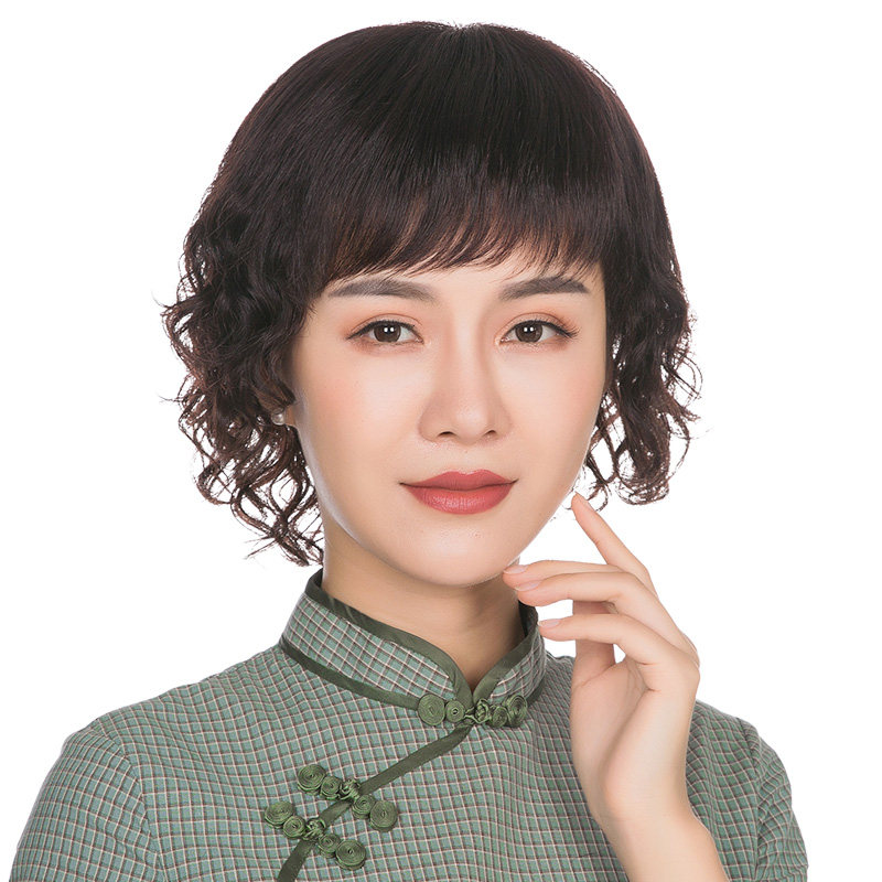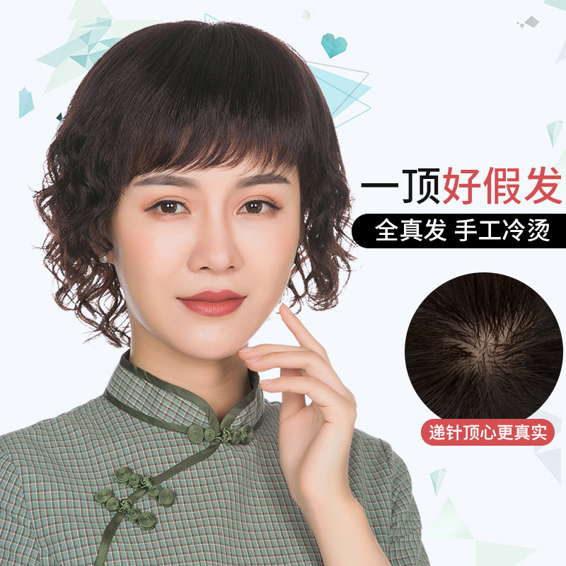 Wig Woman Short Hair Short Natural Curly Hair Hair Real Hair Old Wig Sets Live-action Hair Mother Fashion All-headgear Style-Taobao