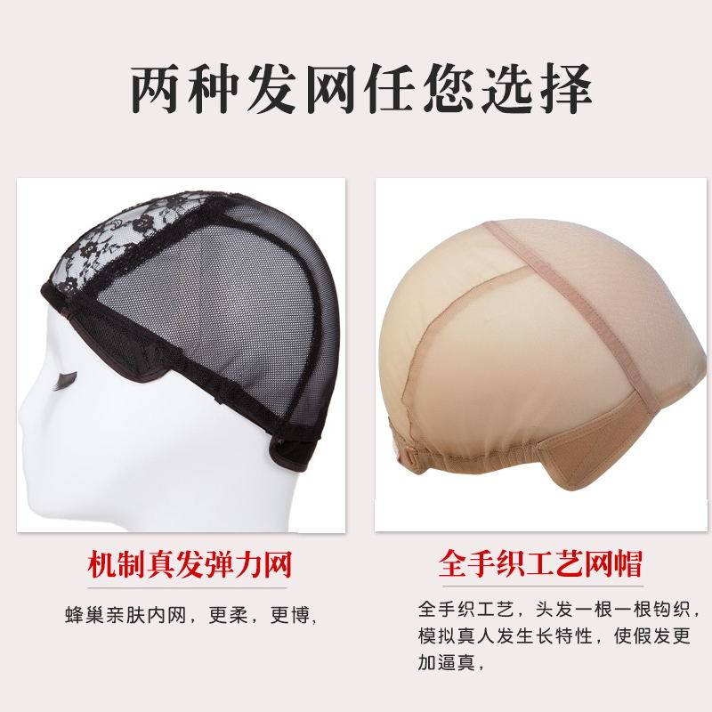 Natural black (real hair elastic net) hand-woven dark brown (real hair elastic net) hand-woven wine red (real hair elastic net) hand-woven natural black (real hair elastic net) delivery stitch