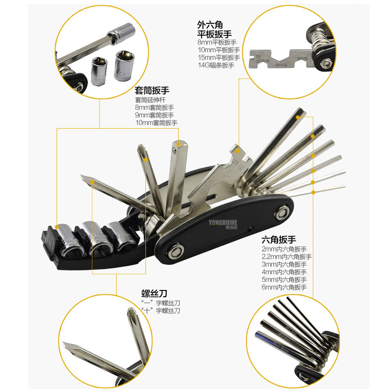 Yellow Composition Tool (Section B) Blue Combination Tool (Section B) 16 all-in-one tool color box packing (A section) Magic buckle Disassembly Tool Red Herepaired Car Flower Drum Wrench YC152