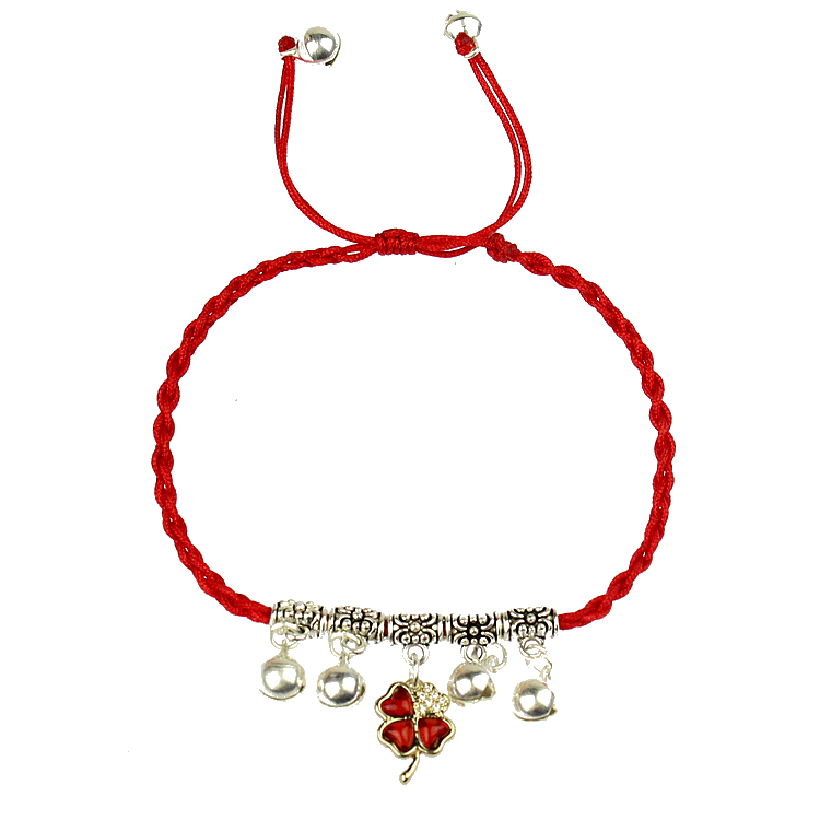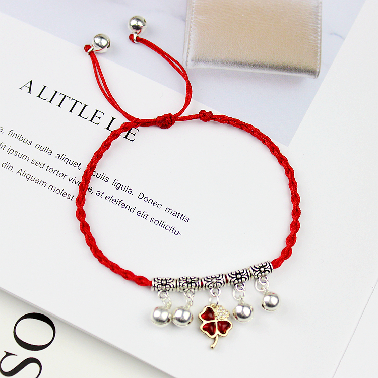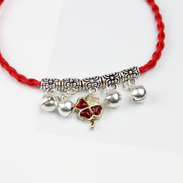 Popular red rope Bell foot four-leaf clover red corundum lucky women's foot decoration retro fashion adjustment hand dual use