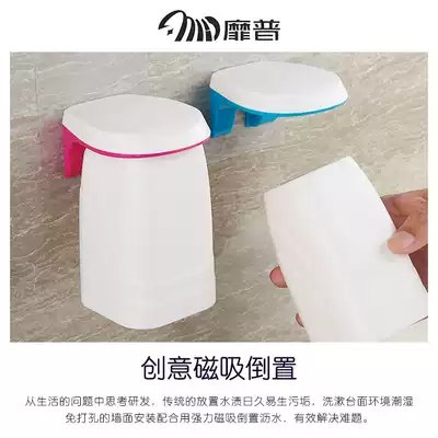 Creative magnetic suspension mouthwash Cup Magnetic brush Cup shelf powder room wall-mounted tooth cylinder cup Korea-free hole