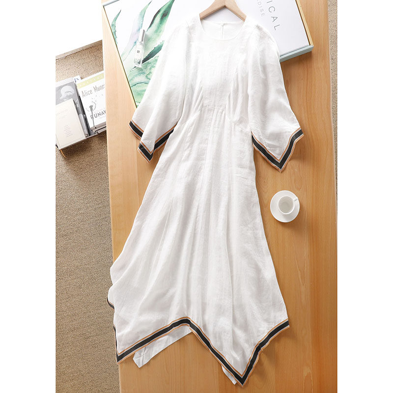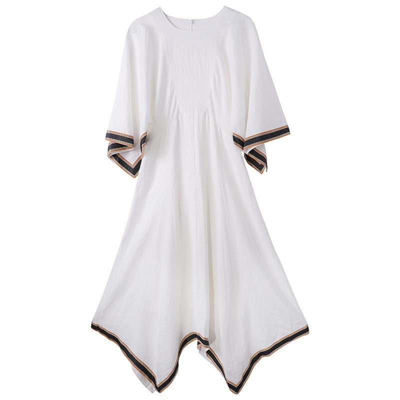 Holiday Wind Upper Body Good Beauty Linen Opening Fork Bat Cuff Irregular Skirt Hem Webbing in Long Ocean Dress 67660