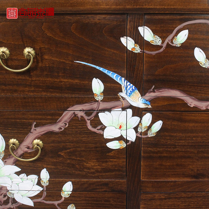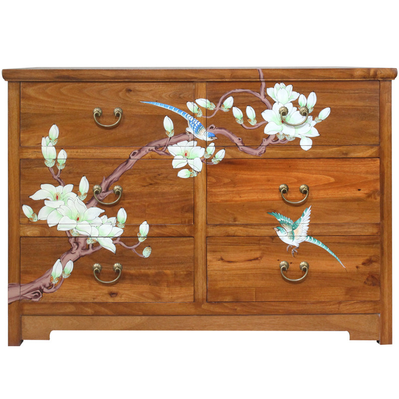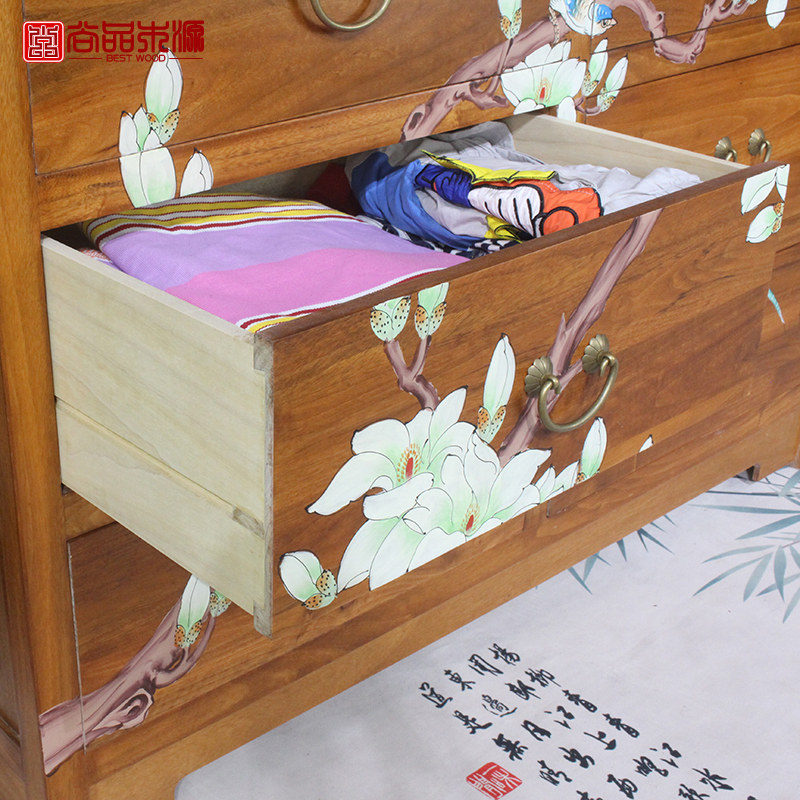 New Chinese-style solid wood six-drawer chest camphor wood multi-drawer storage cabinet bedroom storage cabinet living room painted chest of drawers