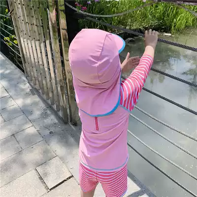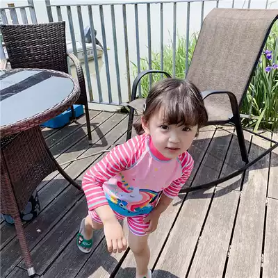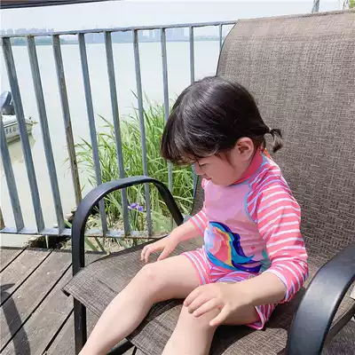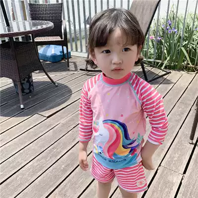 Korean children's swimsuit cute girl two-piece long-sleeved striped unicorn baby baby sunscreen swimsuit