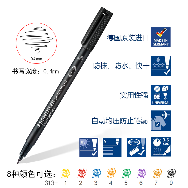 Germany STAEDTLER STAEDTLER 313S black marker pen Oily red blue disc pen Non-fading thin head film pen Film pen Painting pen Non-erasable 0 4mm