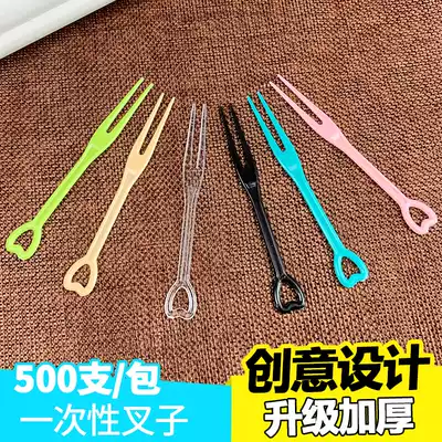 500 fruit Fork Transparent disposable small fork plastic fruit sign independent packaging cute cake fork