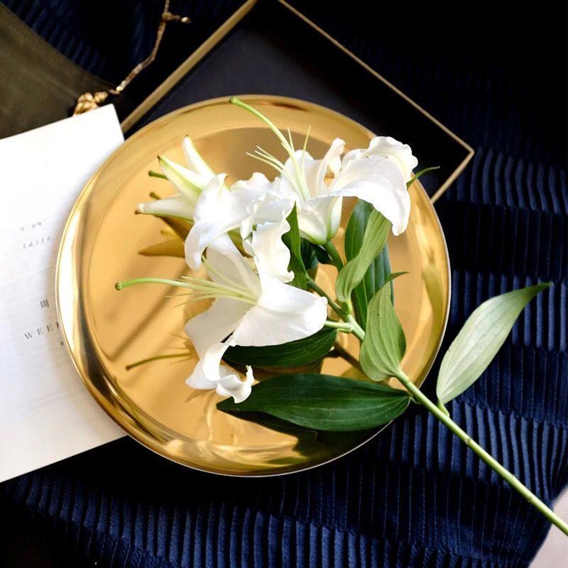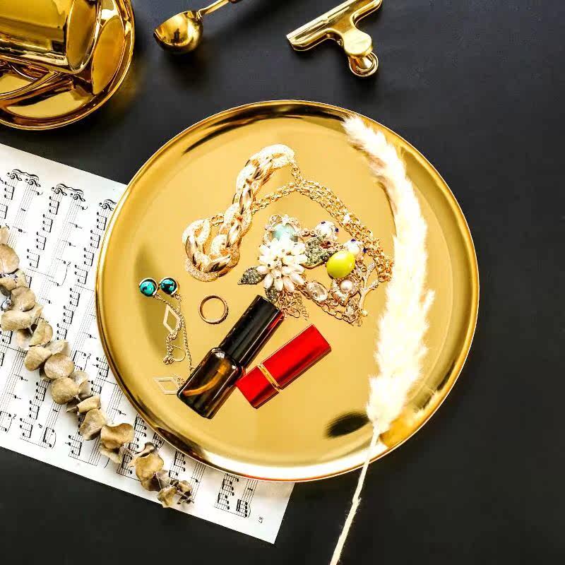Cozyhome Yihe Nordic style gold-plated stainless steel round storage tray jewelry tray home model room decoration