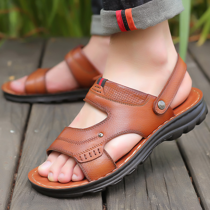 Sandals men's leather 2021 summer new men's casual cowhide thick bottom non-slip middle-aged dad beach cool slippers shoes