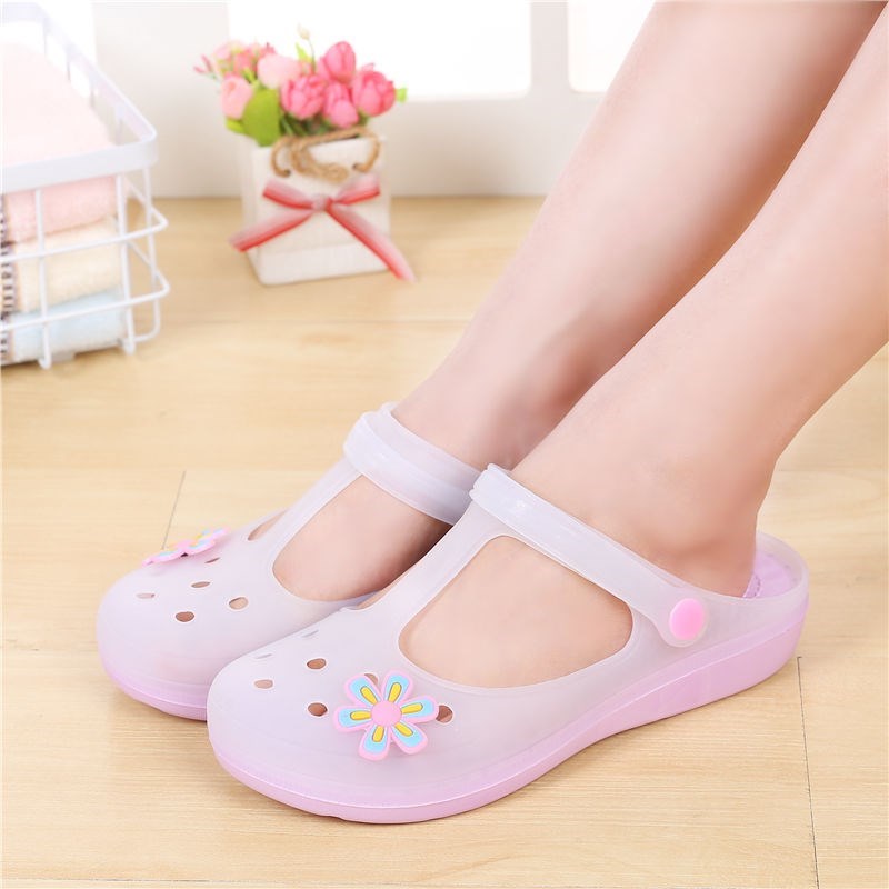 Home outing beach fashion breathable round head hole shoes Baotou slippers women wear soft bottom soft leather non-slip to work
