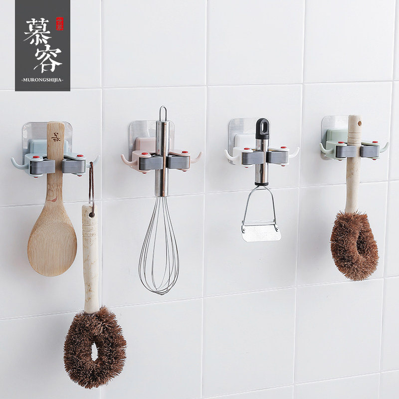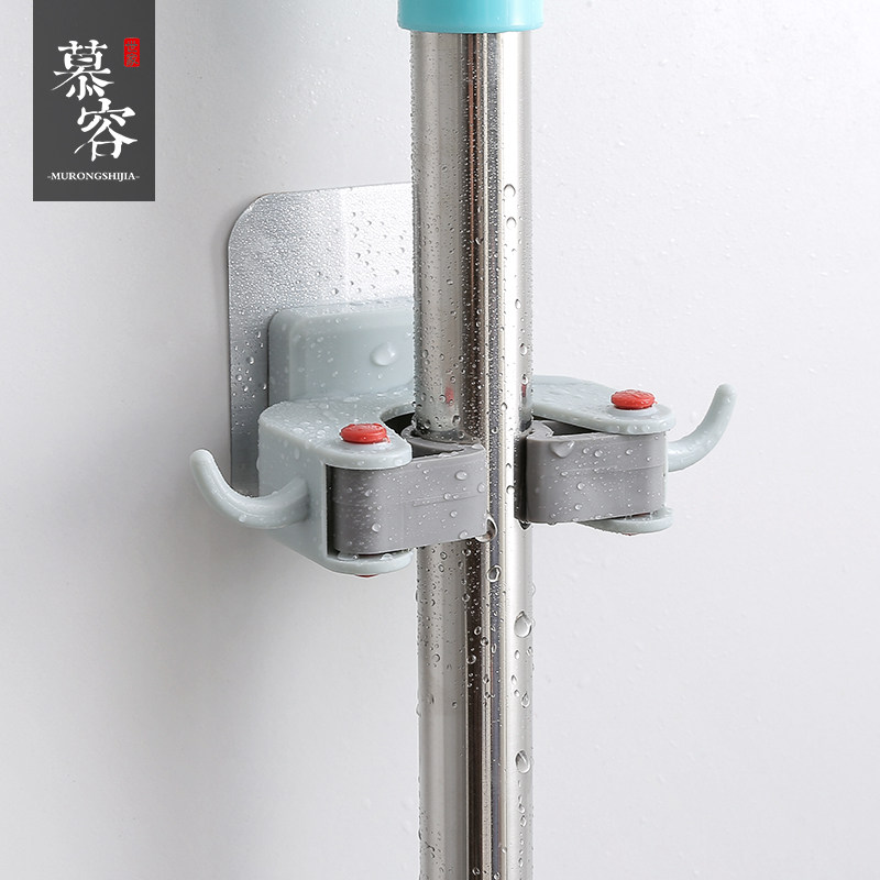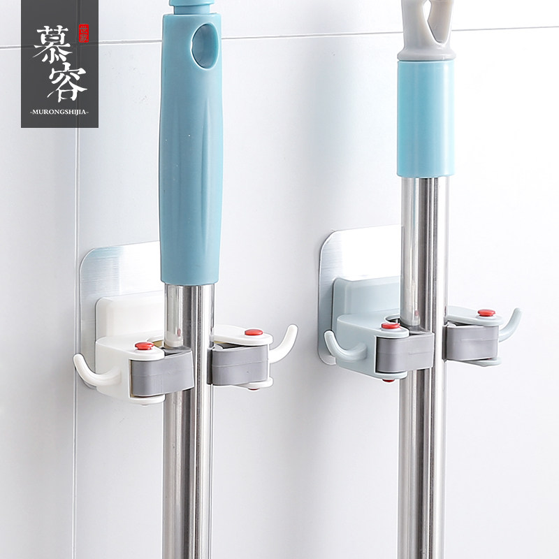 No hole mop rack Powerful load-bearing hook clamps Bathroom wall hook storage clip Mop broom card holder