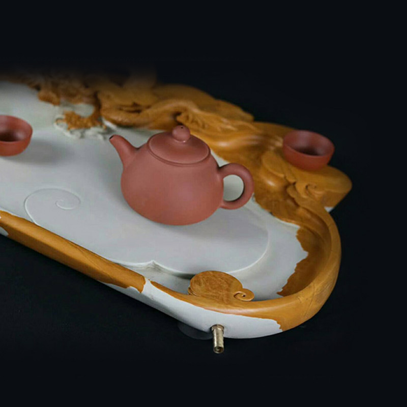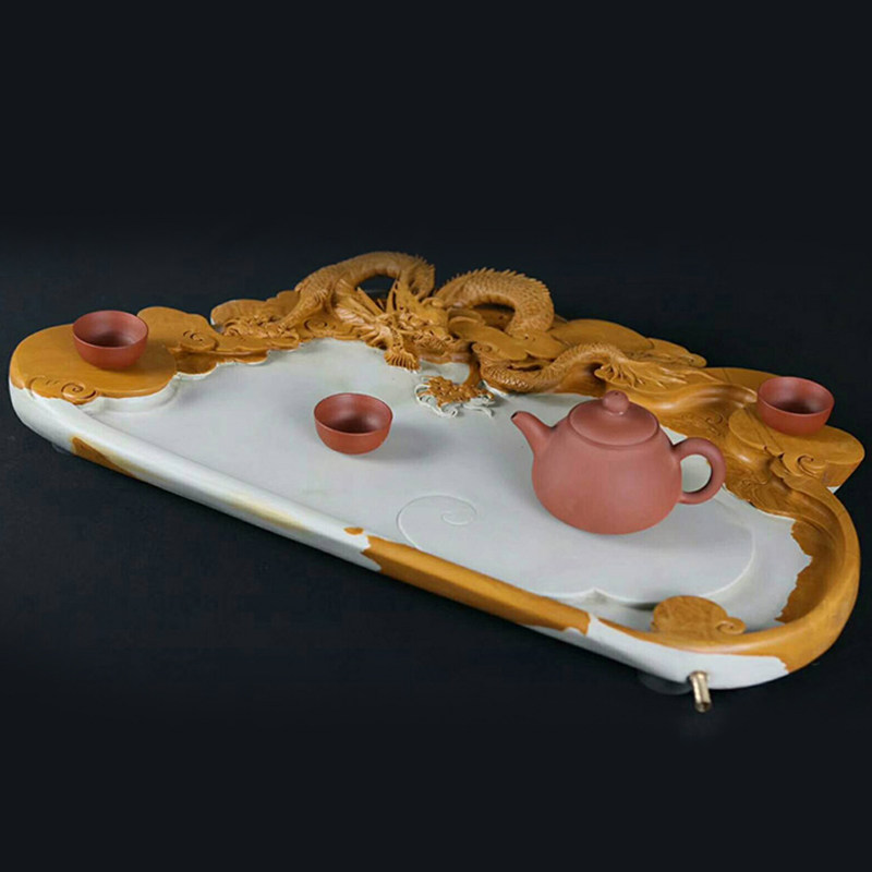 Yuanyun natural large hand-carved Songhua inkstone inkstone tea tray tea sea tea table drainage inkstone stone