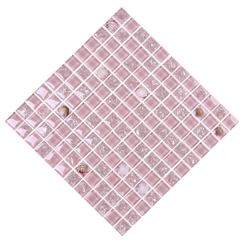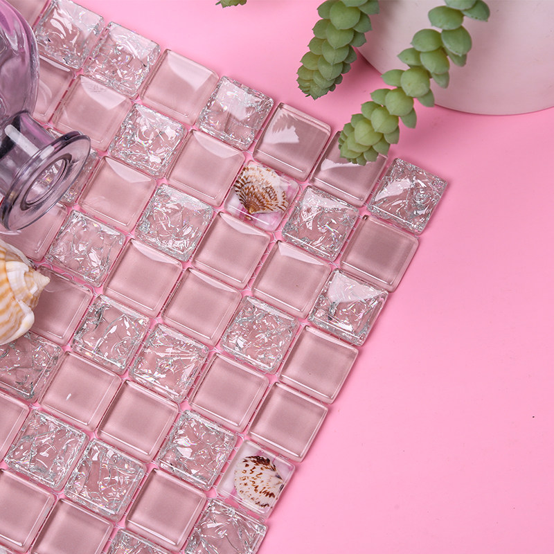 KASARO pink crystal glass mosaic powder room tile bathroom TV background wall stickers net bottom non-self-adhesive