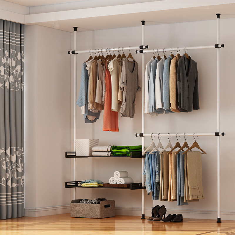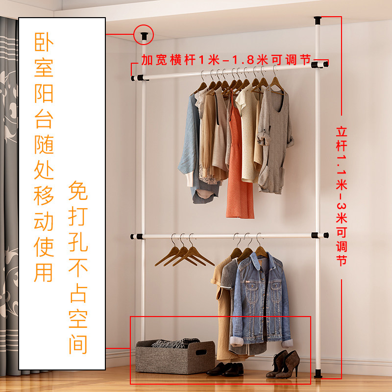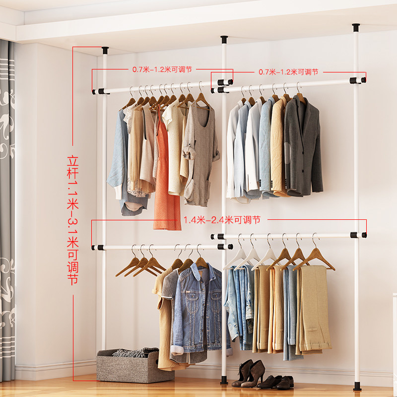 Indomitable clothes rack floor-to-ceiling double-rod bedroom coat rack simple wardrobe group device rack