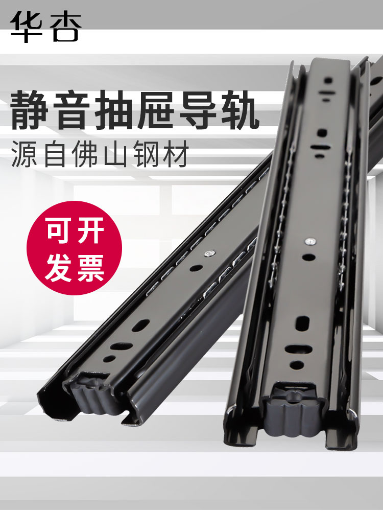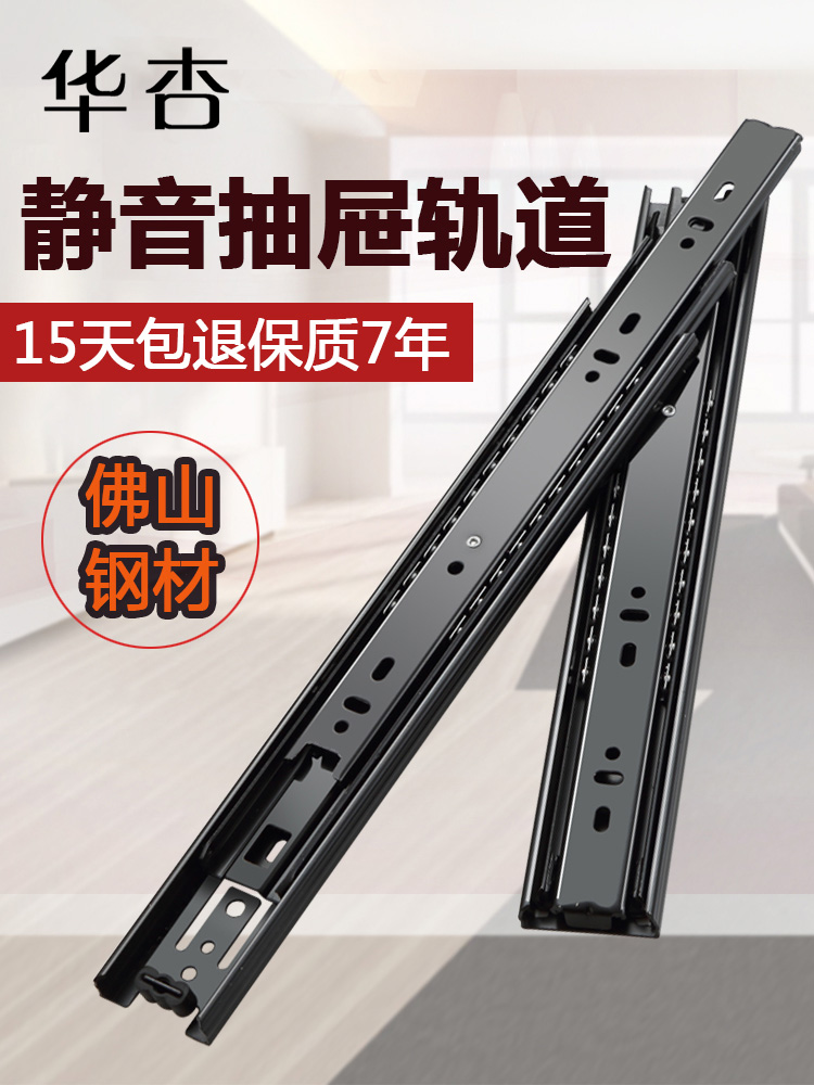 Huapricot Thickened Drawer Track Damping Buffer Silent Three-section Full Exhibition Side Mount Slide Rail Ball Bearing Integral Cabinet Slide Rail Guide Rail