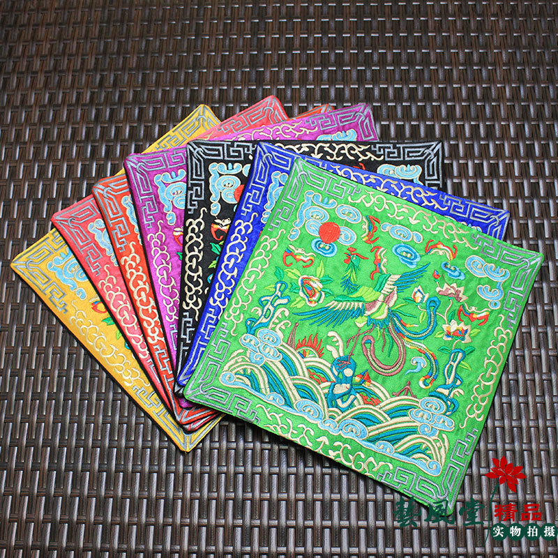 Embroidered square dining cushion New Chinese style table cloth art disc cushion embroidery non-slip mat heat insulation cushion anti-burn cloth cushion tea tea cup cushion