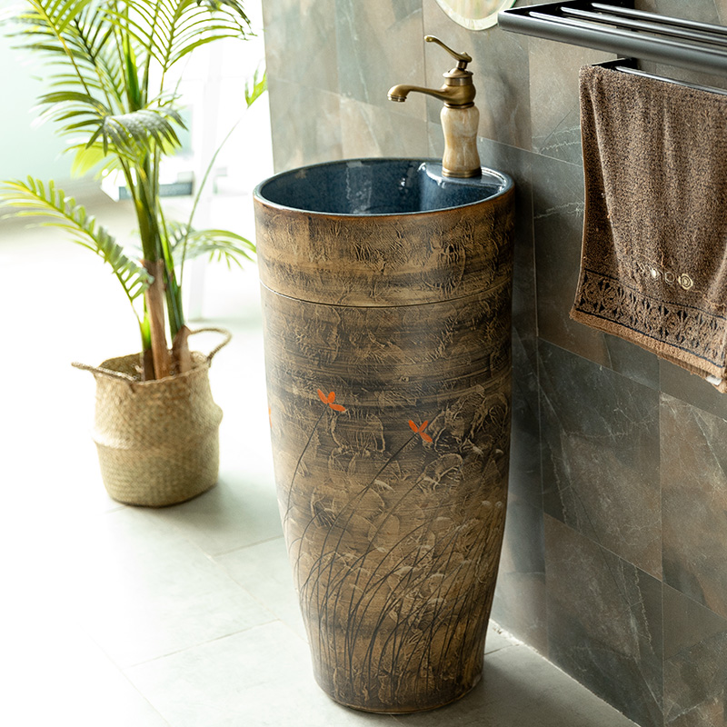 Washbasin Makeup Room Simple Hand Wash Table Ceramic Columns Style Washbasin Table Basin Integrated Balcony Hotel Ceramics