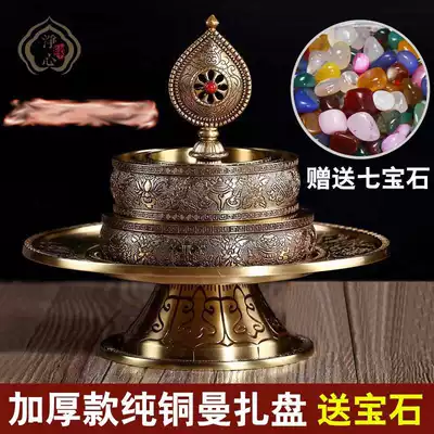 Pure copper Manza plate exquisite hand-carved Buddha Hall Seven Treasures Manza plate Nepal craft to send gems