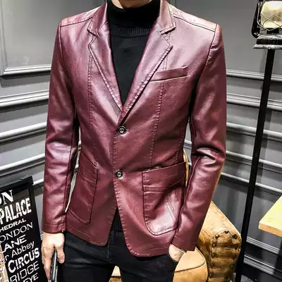 Suit leather men's slim 2020 spring and autumn sheepskin jacket winter young and middle-aged men's leather suit jacket trend