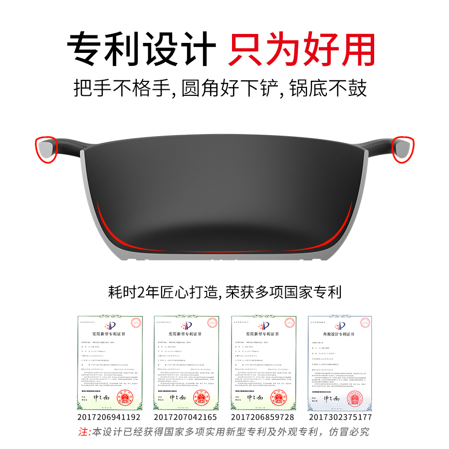 Guiwei cast iron pot Flat-bottomed wok uncoated thickened Chinese pig iron electromagnetic stove Universal less fume household