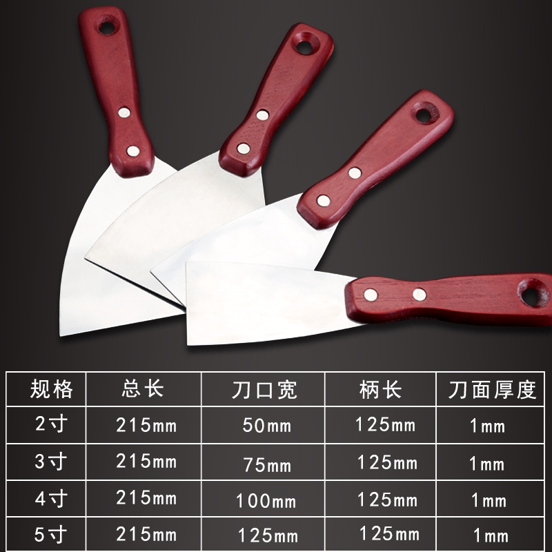 Putty knife stainless steel thickened wooden handle batch gray painter cleaning scraper putty knife pancake barbecue small shovel dirt knife
