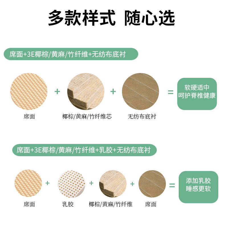 1 5cm coconut palm 1cm latex (total thickness 2 5cm) 2 0cm coconut palm 1cm latex (total thickness 3 0cm) 2 5cm coconut palm 1cm latex (total thickness