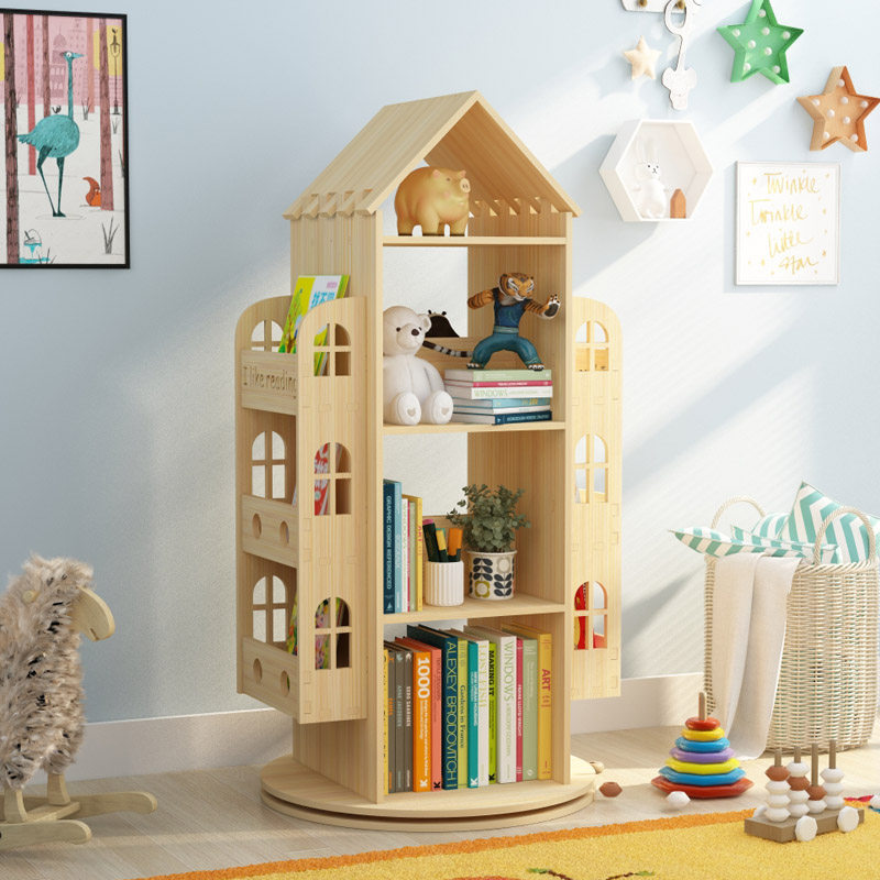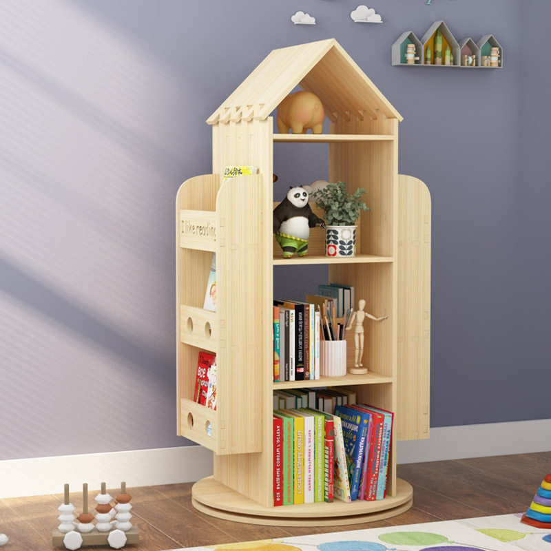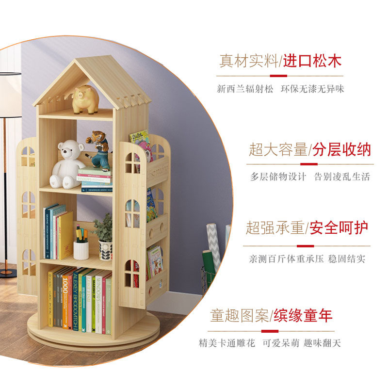 Creative solid wood rotating bookshelf Household floor baby children's toys storage Student small bookcase storage shelf
