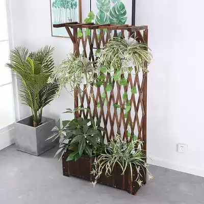 Outdoor anticorrosive wood grid flower shelf climbing vine flower pot stand outdoor yard fence wooden fence flower box partition screen