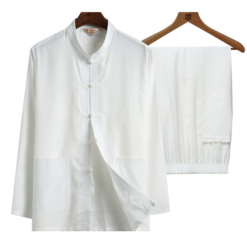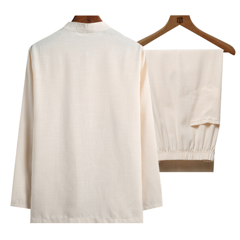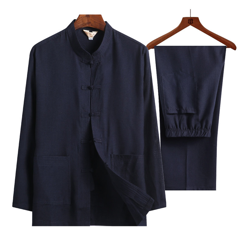 Spring and autumn new middle-aged and elderly Tang suit retro linen Chinese style solid color men's long sleeve morning exercise dad suit