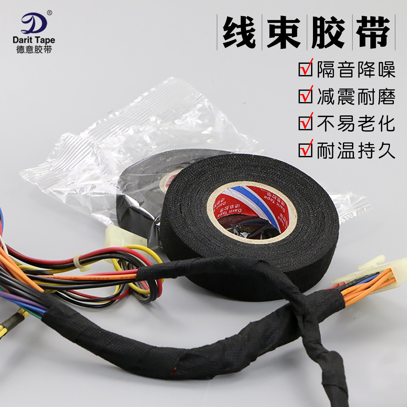 Deyi tape car wiring harness tape high temperature resistant engine compartment winding flannel tape super sticky noise reduction insulation black tape eliminates central control car door car body friction abnormal noise harness tape