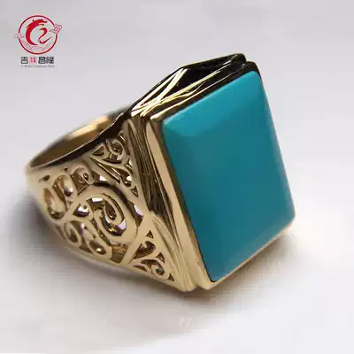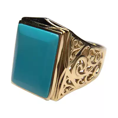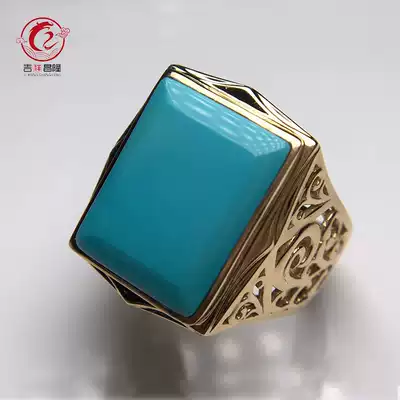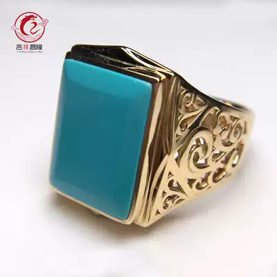 Hubei natural ore high porcelain turquoise ring for men and women 18K gold inlaid ring square ring face ring accessories