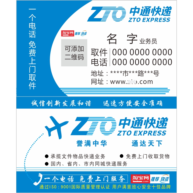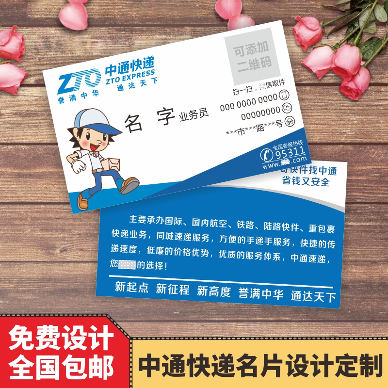 Zhongtong express business card production free design custom-made copper plate paper double-sided card color printing
