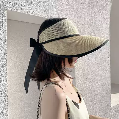 Non-pressure hair summer empty roof cap children summer sunshade face Net red sun foldable straw hat