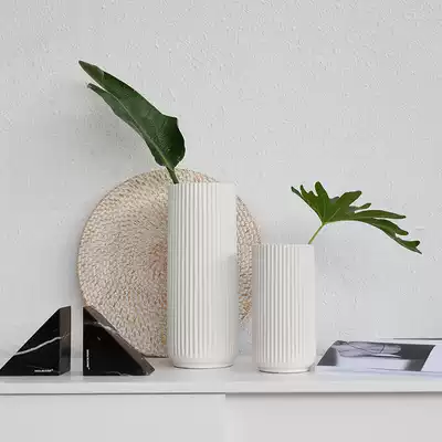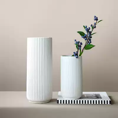 Zhi Meijia dry flower simulation flower arrangement vase Nordic simple white vertical stripe ceramic flower water culture