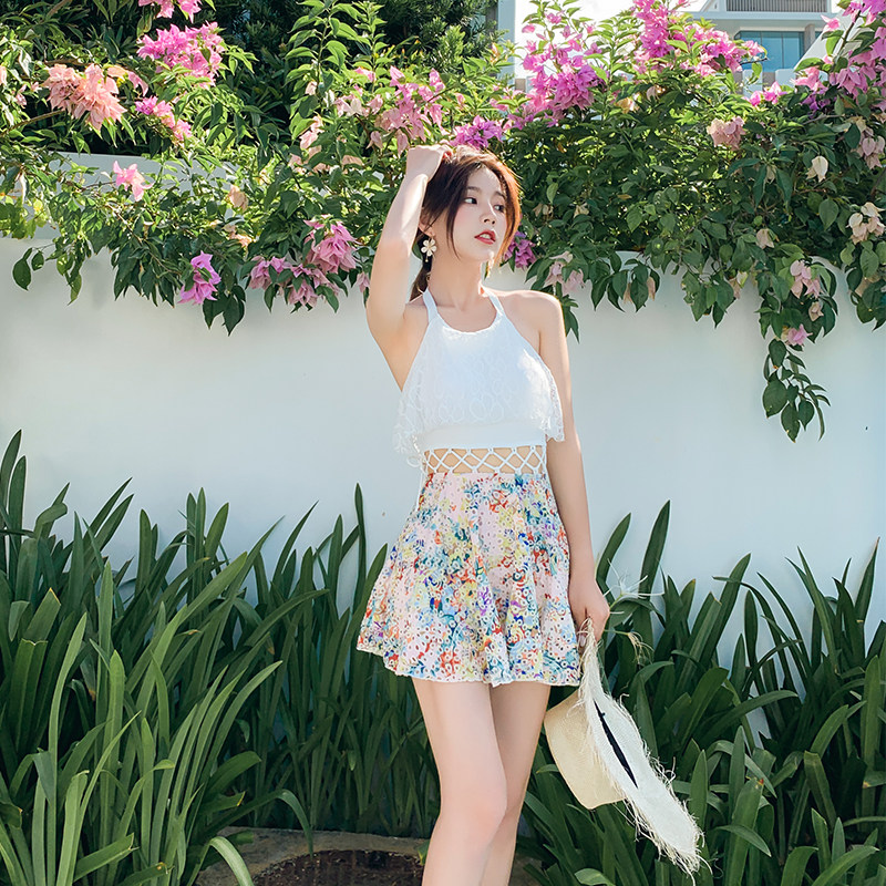Halter neck one-piece swimsuit women's beach dress super fairy hollow cutout cute sweet bikini Korean version of the net red sexy swimsuit