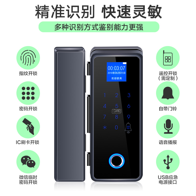 Wiring-free glass door fingerprint lock office password access control card reader remote control drill-free single and double door intelligent electronic lock