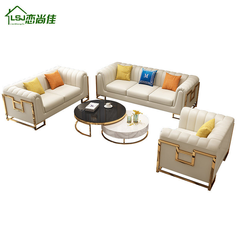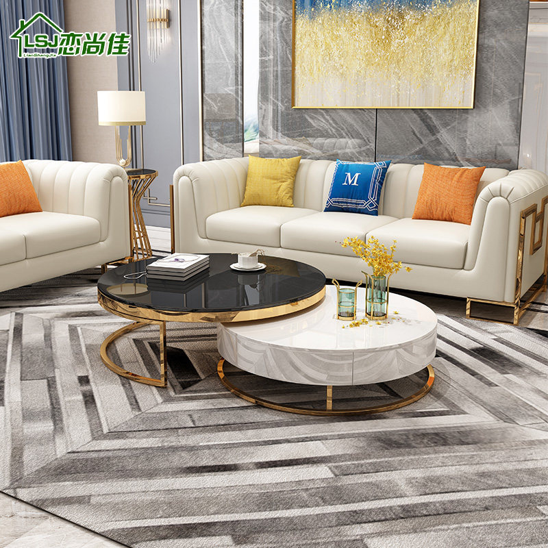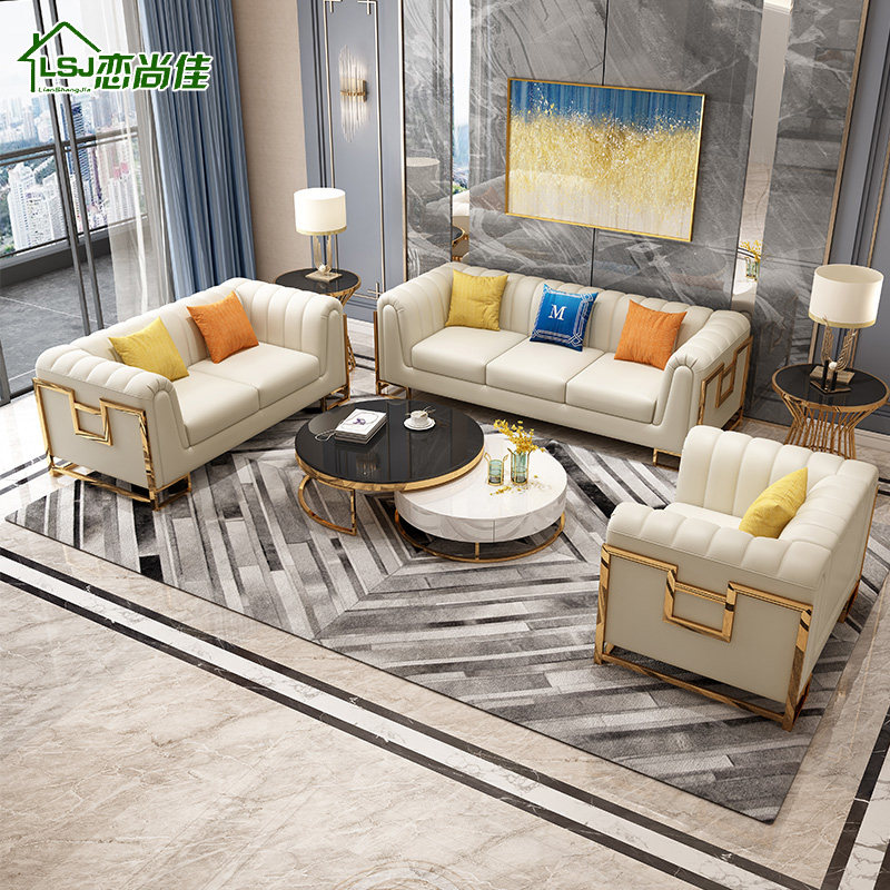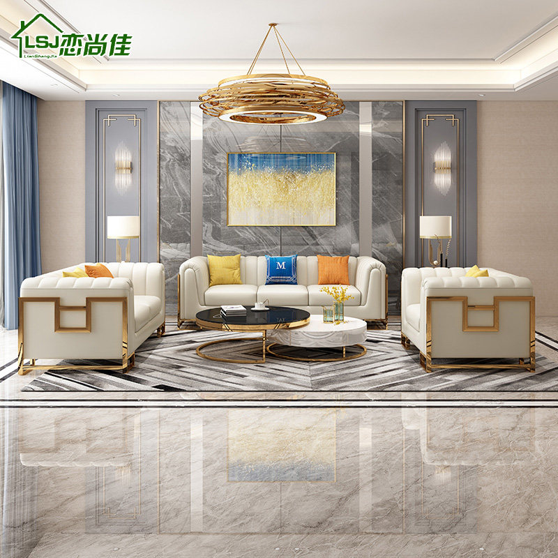 Hong Kong-style light luxury postmodern minimalist size apartment living room American fabric leather solid wood sofa set combination