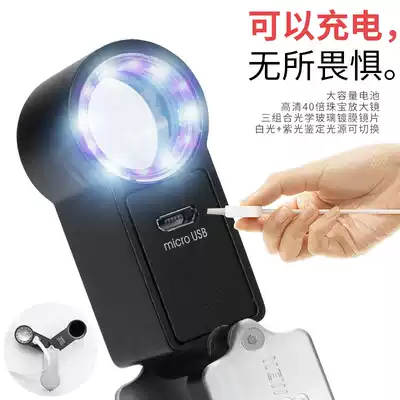 Longan 8th generation Charles color filter rechargeable magnifying glass with light 40 times x White Violet jewellery mirror can be connected to mobile phone Jade Jade Jade Diamond Diamond Diamond Ring red sapphire jewelry identification tool